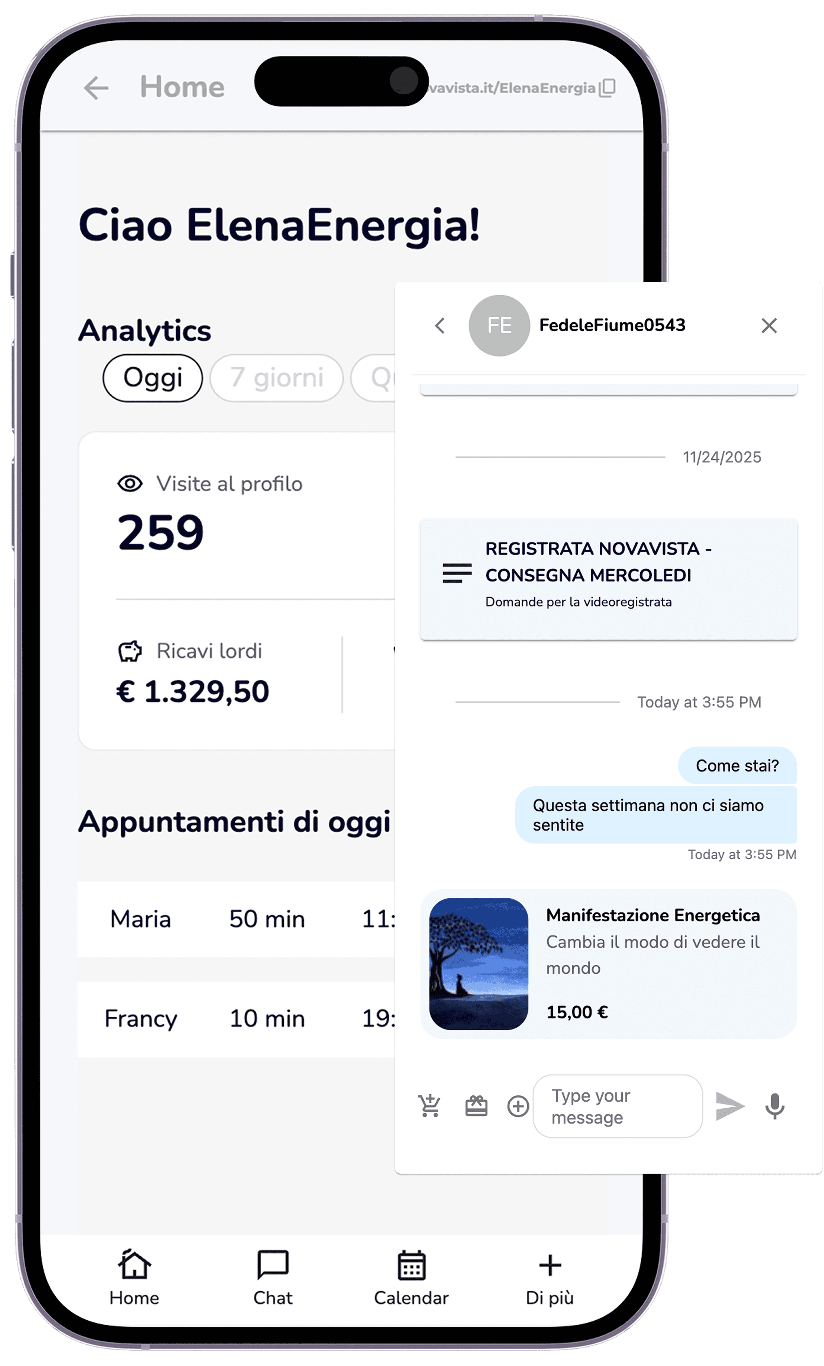 NovaVista ha tutto ciò che ti serve per gestire e vendere i tuoi servizi spirituali ed olistici. Tutto in un unico posto
