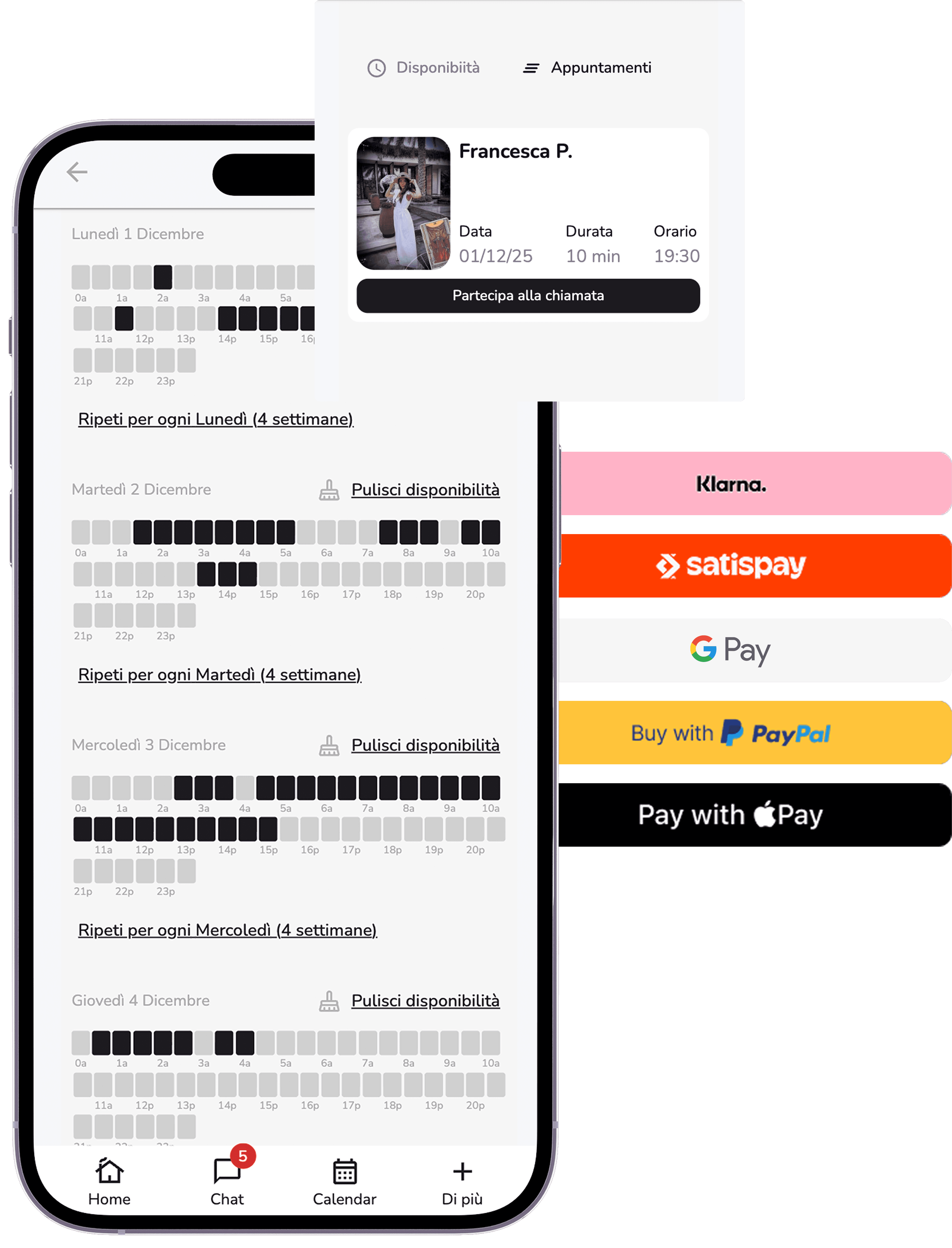 Puoi finalmente vendere tutto quello che un cliente desidera da te: chiamate, videochiamate, audio, video, PDF, contenuti esclusivi, abbonamenti, e tanto altro…